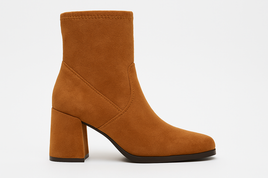 Caramel Suede Western Chic Block Heel Ankle Booties